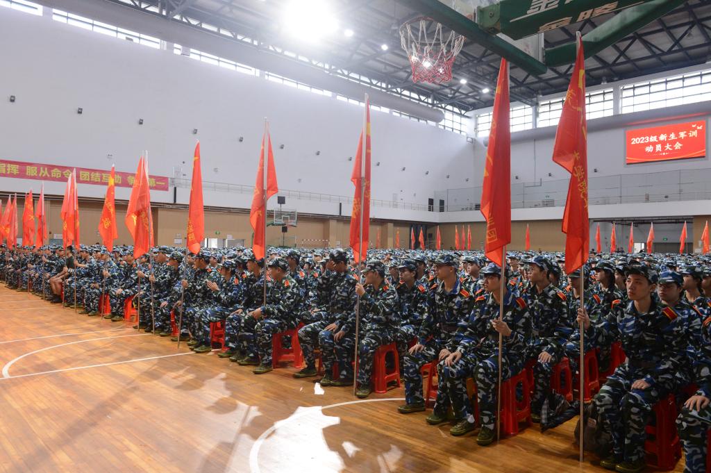 10月9日上午,我校2023级新生军训动员大会在学校体育馆举行。校党委委员、副校长杨云奇,承训部队领导,我校相关部门负责人、负责新生军训的专职副书记、辅导员,2023级全体新生参加大会。会议由保卫处处长刘高明主持。