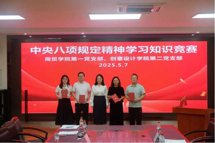 5月7日下午,我校商贸学院第一党支部与创意设计学院第二党支部在8C209联合举办中央八项规定精神知识竞赛。本次竞赛旨在深化党员对中央八项规定精神的理解与贯彻,通过以赛促学,营造积极的学习氛围。