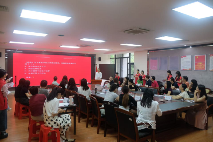 此次活动由商贸学院第一党支部组织策划,精心整理了70道关于中央八项规定精神的题目,题目类型有单选题、多选题和问答题。竞赛设置了必答、抢答、问答三个环节,内容涵盖中央八项规定精神的具体内容、出台背景及重要意义等。党员们组成了10个团队参赛,在必答环节沉稳应对,抢答环节积极踊跃,问答环节深入思考、精准作答,展现出扎实的理论功底和良好的团队协作精神。