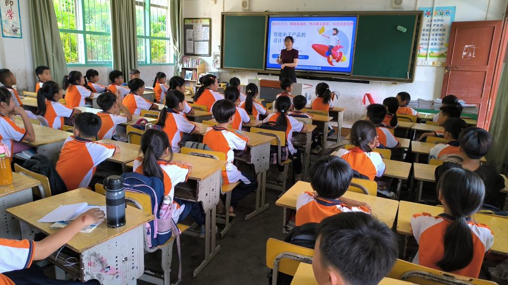 活动中,电子信息学院党员师生分别向揭东第四小学和庵后小学的学生们详细介绍了智能电子产品的设计与制作过程,还展示了循迹小车、平衡小车、雷达避障小车、不倒翁等多种智能电子产品。在智能电子产品制作互动环节,党员师生指导孩子们亲手制作遥控小车。通过亲身实践,孩子们不仅培养了电子产品制作技巧,还培养了团队协作精神以及对智能科技的浓厚兴趣。